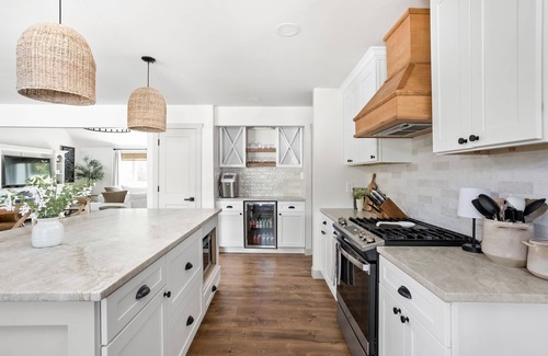✔ Fully stocked kitchen with pots, pans, utensils, and appliances to cook your own meals
