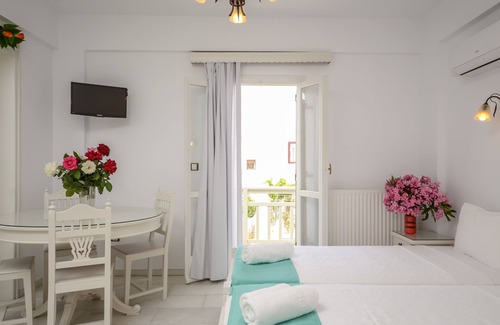 "Lygdamis Hotel" quadruple apartment in the heart of Naxos is located in Old Town Naxos. "Lygdamis Hotel" quadruple apartment in the heart of Naxos provides accommodation, featuring Balcony/Terrace, Wellness Facilities, Child Friendly, among other amenities. This Hotel features Balcony/Terrace, Wellness Facilities, Child Friendly, to make your stay a comfortable one.