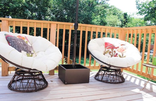 Located in Franklin, enjoy what this studio has to offer. Our studio apartment offers a great combination of location and relaxation. It is separate from the main house located 1.1 miles south of the Square on Main Street in downtown Franklin. There is a private office space on the first floor. Up a flight of stairs is a private modern bathroom, studio style open floor plan with spacious bedroom with a full bed and daybed, with a trundle bed, a fully equipped kitchen and den with ample seating. Off the den is a spacious, private deck with seating. With amenities like AC, heating, WiFi, a washer/dryer machine, and an iron, guests will have a pleasant stay.