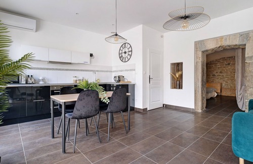 The apartment is close to the Saône River, home to three of Paul Bocuse’s iconic restaurants: Brasserie Fond Rose, Brasserie L'Ouest, and the gastronomic Abbaye de Collonges.