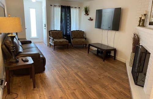 Single story two bedroom, two bath, two car garage with private yard. Walk to shopping and restaurants. Safe neighborhood to walk your dog in. Yes, I welcome pets. Walk in showers with grip bars. Long driveway for work trucks if needed. Located near Sunrise Mall. Farmers market on Saturdays. I have multiple properties to combine stays if you are traveling with a large group?
