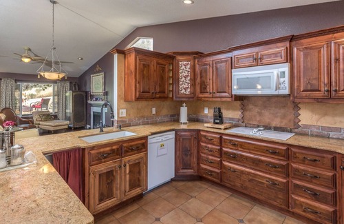 Amenities: A/C (all rooms), 3 BR/2.5 BA, pool table, hot tub, sauna, basketball, BBQ grill, fast WIFI and streaming (5 TVs), beautiful well-equipped kitchen, several comfortable outdoor living spaces, wildlife.