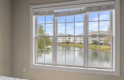A private balcony patio is featured overlooking a fresh water pond with outdoor table and chairs to enjoy our fresh Carolina air. It is just a 5 minute drive to Myrtle Beach on the Atlantic Ocean.