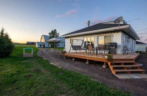 Belle grande maison entourée de champs a St-Jean de l'ile d'Orléans pouvant accueillir 15 personnes, elle est toute rénovée, elle a 2 salles de bain, 2 chambres avec lit queen, 1 chambre avec lit double, 1 chambre avec 1 queen et 1 double et un boudoir avec 1 lit double, 1 lit simple et 1 divan-lit double, superbe vue sur le fleuve pour voir passer les bateaux et belle vue derrière sur le mont Ste-Anne et les étoiles, literie fournie, cuisine équipée, belle terrasse aménagée, balançoire, foyer extérieur, merveilleuse maison pour les rencontres en famille ou entre amis, ou encore pour les réunions d'affaire.