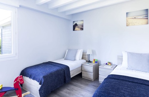 This charming Landes-style villa on the outskirts of the traditional village of Tosse makes a wonderful base for families seeking the perfect blend of relaxation and adventure. The tastefully furnished villa is decorated with a lovely beach-chic flair, in keeping with the cool vibe of nearby Hossegor, with bright and airy accommodation arranged on a single level (excepting a mezzanine bedroom protected by a stair gate). The comfortable living area leads out onto an attractive veranda, beautifully equipped for al fresco dining, and beyond this a sunny terrace surrounds the inviting heated pool. The spacious gardens at the villa are perfect for barbecues, boules, or hide-and-seek; whilst providing a peaceful retreat from the hustle and bustle of the coast. For families with younger children, there is a play area with a slide, swing and delightful playhouse. It is worth noting that the pool has an electric cover and wristband alarms, with toddler safety in mind. And this well-designed villa is equally appealing to families with older children, thanks to its superb village-edge location, just a 15-minute drive from the coast. The local area This excellently situated villa is an 8-minute walk from Tosse, an authentic village with an appealing bakery and a selection of restaurants and shops. There are tennis courts in the village and lovely walking and cycling trails meander the 5 miles through the fragrant pine forests to a wonderful sandy beach. Hossegor, with its trendy boutiques and upmarket restaurants, is a 12-minute drive away. Seignosse is a similar distance from the villa, and offers an 18-hole golf course, aqua park and an array of superb beaches catering wonderfully for the needs of surf enthusiasts and families with young children alike. Days out For nature lovers, the peaceful wetland reserve Marais d’Orx, with its high-sided wooden walkways, is a safe-haven for families with young children. Further afield, children will love the funicular train rides at Ascain and Artouste in The Pyrénées National Park. The charming city of Bayonne, famed for its fine chocolate and cured hams, is a 30-minute drive whilst world renowned Biarritz lies a little further south; offering an intoxicating blend of Belle Époque glamour, elegant eateries and fashionable shops. The picture postcard hillside villages of the Basque Country give an insight into the area’s rich cultural heritage and a visit to the pretty fishing port of St-Jean-de-Luz, the culinary capital of the region, is sure to delight, with its family-friendly beaches and historic town center. For those who are looking to explore as much of Europe as possible, a short ferry ride from Hendaye will take you to the atmospheric coastal town of Hondarrabia in Spain. You can also drive across the border to enjoy tapas in San Sebastian or at the Guggenheim in Bilbao.Smoking - not allowedFamily favourite range of toys and games, suitable for ages 5-11. Extra: AIR CONDITIONING Free of charge , BARBECUE Free of charge , CRIB Free of charge (upon request), ELECTRICITY Free of charge , BABY CHAIR Free of charge (upon request), LINEN AND TOWELS Free of charge , PRIVATE CAR PARK Free of charge , PRIVATE SWIMMING POOL Free of charge , POOL HEATING Free of charge , WASHING MACHINE Free of charge