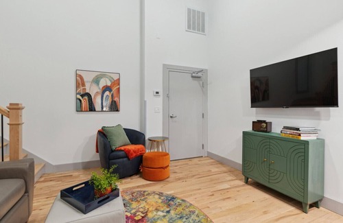 Tucked away in a historic red brick building in downtown Nashville, this spacious new 2024 buildout includes 2 bedrooms, 2 bathrooms, a cozy den and kitchenette.
