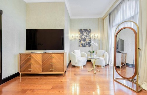 This executive suite comes with a separate living space that is adorned with comfortable seating arrangements and is perfect for entertaining guests or relaxing with a book. The en suite bathroom is a work of art, finished with the finest marble and intricate tile work. It features a large bathtub providing a spa-like experience.