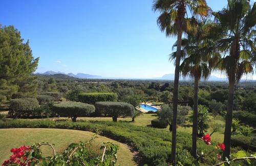 The villa is nestled in a beautiful garden with palm trees, rhododendron and other native plants. From everywhere you have a magnificent view of the bay of Pollenca.