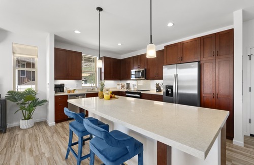 Large windows let in tons of natural light, while three bedrooms give you plenty of space to spread out. Check out the games stocked at home, or grab some beach gear from the garage and make your way to the shoreline. A quick drive will bring you to the beaches of Makaha, and the rest of the island is waiting to be explored. Escape to Oahu at Makaha Hideaway, your first choice for a one-of-a-kind Hawaiian adventure. Guests also have access to a community pool, fitness center, and communal spa—perfect for a refreshing swim, a relaxing soak, or keeping up with your workout routine while enjoying the island lifestyle.