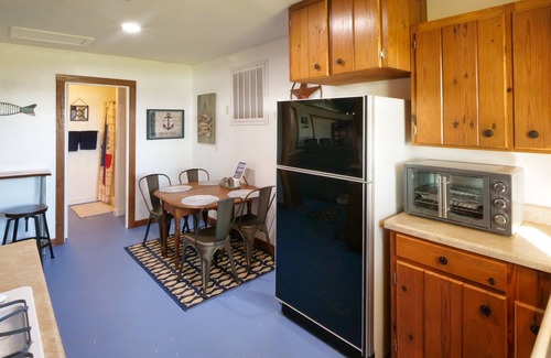 In the evenings, gather around the large fire pit with seating for 6+, or enjoy a laid-back dinner at the picnic table area while the breeze rolls off the water.