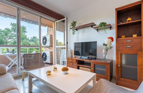 This spacious flat in Arroyo de la Miel, Benalmadena, has three bedrooms and sleeps up to six people. It has a terrace, internet access, heating and air conditioning. The building has a lift and a communal swimming pool. It also includes a garage in the same building. The kitchen is fully equipped, and the flat has a washing machine. It is an ideal place to enjoy a comfortable holiday on the Costa del Sol.