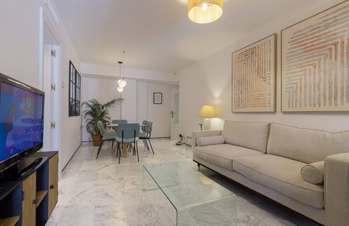 Malagueta Palmeral de las Sorpresas is a property located in the heart of La Malagueta, considered one of the best residential areas of the city. The location is exceptional since it is just a step away from main spots such as the Palmeral de las Sorpresas, Pompidou Museum, Paseo del Parque, Picasso Museum or La Alcazaba. As it is one of the best areas of the capital, you can find exclusive restaurants, cafes, supermarkets, shops and local businesses very close to the apartment. Furthermore, the beach is located only a few steps away from the apartment.Malagueta Palmeral is a three bedrooms apartment with two bathrooms that has all the functionalities. It is a very quiet and spacious apartment, which also has a very comfortable terrace. This apartment has all the comforts, appliances and all the necessary amenities to make you feel at home.It has been recently decorated, providing a very personal style and making the apartment a very cozy place to live during your stay in Málaga. The rooms are fully equipped with 100% ECO cotton bedding and have two bathrooms. One of them with a bathtub and the other with a shower.With a pleasant 5-minute walk, crossing the wall of the Alcazaba or the Paseo del Parque we can reach the center of the city, where we can enjoy some of the most exclusive and authentic restaurants in Malaga.
