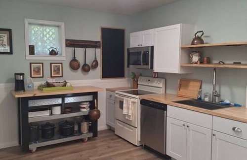 This comfortable, private, and immaculate apartment has a large bedroom with a king bed and smart TV. As well as a spacious and well-equipped, eat-in kitchen, full bath, and laundry. Enjoy watching the large screen in the cozy living room with an electric fireplace. Walk out to the exclusive-use waterside yard, patio, gas grill, and fire pit. New dock to be built in winter 2023 Rental includes the use of 2 sit-on kayaks ( please bring your own life vests). You are going to love this place!!