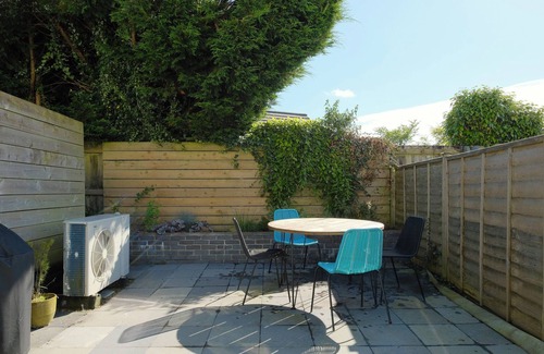 Step outside to discover your private patio and garden—a delightful area perfect for alfresco dining or soaking up the sun. With an outdoor dining set and surrounded by greenery, this space offers a peaceful spot to enjoy your morning coffee, a glass of wine, or a family barbecue. The patio is enclosed, making it a safe space for children to play while you relax.