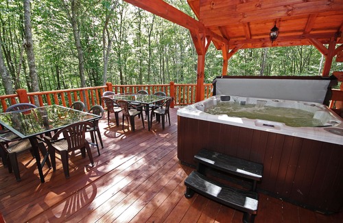 Fully equipped kitchen, including dishwasher, microwave, coffee pot, dishes, pots/pans, silverware and more. Covered hot tub areas (2 Hot Tubs) for gorgeous views of the property.