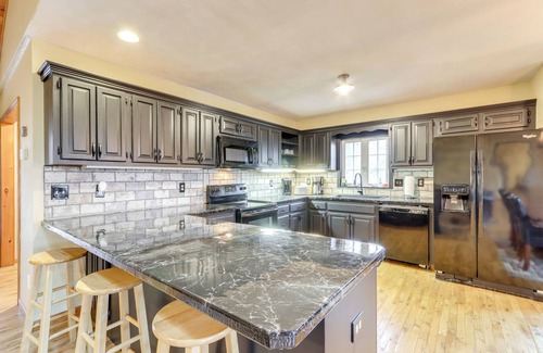 Your next Smoky Mountain getaway awaits with a stay at this 4-bedroom, 3-bath vacation rental in Marble, North Carolina. This charming cabin features multiple decks for sipping morning coffee and enjoying the mountain views, a fully equipped kitchen, and a game room for endless family entertainment. Venture out to hike the trails of the Nantahala National Forest or try your luck at Harrah's Cherokee Valley River Casino, then head back home for drinks shared with friends around the fire pit.