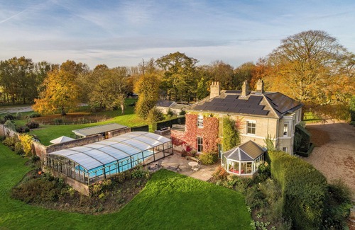 Margaretta House is an enchanting 19th-century English country estate set on 43 private acres of woodlands and wetlands in Norfolk, just 10 minutes from King’s Lynn and 20 minutes from King Charles' Royal Sandringham estate. The property offers luxury and tranquility, an original walled garden, and a heated pool from the beginning of November. With seven elegant bedrooms, including a king sized bedroom suite in the garden it comfortably sleeps 16. There is also two living rooms and a spacious farmhouse kitchen-living area with a wood burning fire. The elegant chandelier lit dining room comfortably seats 16 people. The Conservatory and main Sitting Room is a beautiful space for indoor weddings and the beautiful house and gardens lends itself to the perfect wedding celebration, family holidays and peaceful escapes.