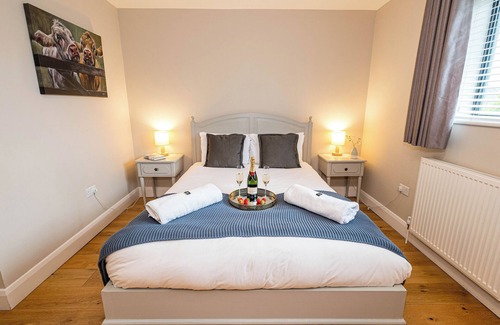 This well-appointed room features a luxurious super king bed with accompanying bedside tables for convenience. A spacious wardrobe with drawers offers ample storage, and a wall-mounted full-length mirror allows you to dress with style.