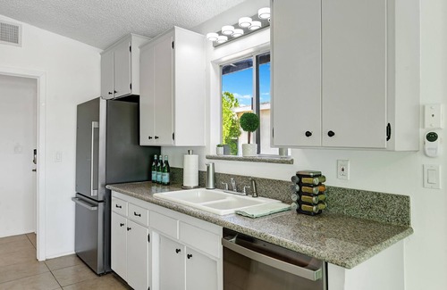 Marilyn’s Secret has a spacious kitchen with new stainless steel appliances and comes stocked with all the cooking supplies you need to whip up lasting memories with your loved ones! Each bedroom has comfortable bedding and blackout blinds for restful sleep. Majestic mountain views of the San Jacinto Mountains. Be sure to catch sunset views in the evenings! 15 minutes to Palm Springs and 45 minutes to Joshua Tree. Have a shopping itch? Desert Hills Premium Outlets is 25 minutes away with 180 designer-friendly stores to meet your needs. Go shopping and come back for viral photos in Marilyn’s stylish home. Whether you’re seeking a quiet relaxing getaway, a festival oriented stay, or looking to take advantage of an event-packed trip to the Desert – this is the home for you!