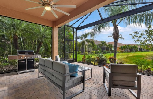 Welcome to Marina Bay Villa! This newly renovated and furnished home is situated in the luxury community of Marina Bay near RSW airport and amazing shopping, golf, and beaches. This 2 bed 2 bath villa is perfectly equipped and appointed to create the ideal vacation retreat. Walk-in closets, a formal dining area and 3 TVs means you'll relax in comfort. Lounge in the screened-in lanai that has a grill and views of a tranquil pond teeming with wildlife. Visit the resort-style pools at the clubhouse that also has a gym, tennis, pickleball and basketball courts. Enjoy excursions to surrounding islands including Sanibel, Captiva and Pine. Visit Fort Myers Beach and Naples for world class dining, boat cruises, manatee tours and famous Florida fishing. This is a gated community that requires HOA approval. There is a $100 application fee.