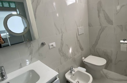 The kitchen is equipped with an oven, a refrigerator, and a dishwasher, as well as a coffee maker, an electric kettle, and a microwave. Connect to the WiFi, or get cozy in front of the Smart TV. Bathroom amenities include a hair dryer, a bidet, and towels. Other amenities at this 2-bedroom, 1-bathroom rental include a dining area, bed sheets, and a dining table.