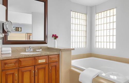The villa is spacious, comfortably elegant, and fully equipped. The open-plan kitchen/dining/living room is perfect for family meals and relaxing at the end of the day. The well-equipped high-end kitchen boasts granite countertops & appliances. Retreat to the master suite where you’ll find a king-sized bed, luxurious garden tub, double sinks, and a separate shower. There are separate living and sleeping areas, which provide ample space for your whole family or group. All the creature comforts of home including Plasma TV and Marriott's sumptuous King sized 'Halo' beds. Includes queen-sized convertible sofas. Villas I units will have two double beds in the second bedroom.