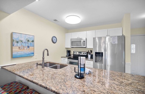 This 3rd floor property has a lovely open floor plan for gatherings with family and friends. The brightly colored décor is cheery and comfortable. Plenty of seating is available in the living room and the kitchen is equipped with everything you need for family meals.