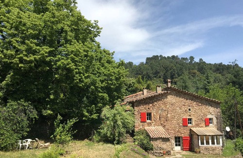 The Mas de la Claie is an authentic Cevennes farmhouse of the 17th century, at the gateway to the Cevennes, isolated in a 20ha property, and in a wild, wooded setting with panoramic views. Come swim in the private pool, secure, hidden from view, eat under a lime tree, walk in the forest and enjoy the freshness of the farmhouse. The Mas de la Claie is located just 4 km from Anduze, with its shops, night market, steam train, bamboo, pottery and summer festivities.