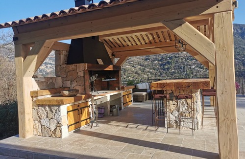 Mas des Amis is a peaceful Provençal home nestled amongst Mediterranean vegetation and nature within only 5 minutes drive to the picturesque medieval Village of Le Bar sur Loup and its amenities. The property offers stunning panoramic views over the mountains and the Gorges du Loup.