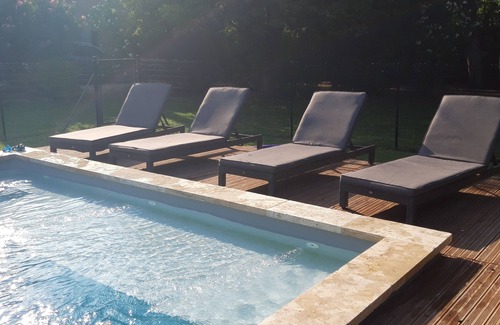 Enclosed garden of 1000 m2, with terrace, teak garden table for 8 people and barbecue. Private fenced pool with beach ideal for small children and relaxation. Sunbathing in the shade or in the sun. Garden furniture for aperitif with armchair and coffee table.