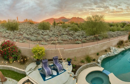 Enjoy your stay at this quiet, comfy and spacious home with a huge kitchen, double oven, play room, private heated pool, hot tub, and trampoline. Venture out to nearby shopping, hiking trails. Close to Ben Avery Shooting Range, TSMC and Lake Pleasant and some of the best golf courses in the country.