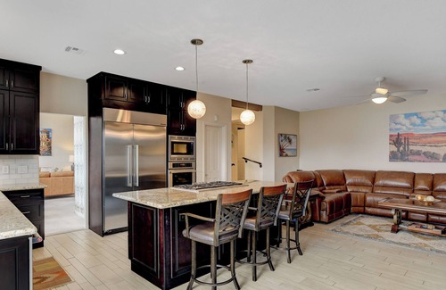 Masterpiece on the 16th Hole has 6 Bedrooms , 3 Bathrooms, and max occupancy of 8 people. The minimum rental for this property is 1 nights, but this can change depending on the season you plan on staying. Previous guests have given good rated it, and VRBO labeled it a top-rated House because of the excellent services rendered by the owner or manager of this House, and has consistently provided great experiences for their guests. Most families or guests that use it recommend it to their friends and some of them are repeat guests. House has a friendly neighborhood, and the Canyon Gate Master has interesting places to visit. If you want to learn more about the House in Canyon Gate Master, such as places to visit and things to do nearby, you can check below to learn more.