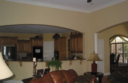 Captivating luxury home in a private wooded setting, spacious eat-in- kitchen, butler's pantry equip for your morning coffee, afternoon smoothie, or evening night cap. A large dining room for your evening meals, living room comfortably situated for total relaxation. After walking miles at the Masters, retreat to the owners suite, take a relaxing bath or enjoy a shower built for two. Enjoy two additional owners suites one on the 2nd level with a large walk-in-closet for all your belongings and a spa like bathroom and shower. The other on the main floor, with a walk-in-closet and a private bathroom and shower/tub. Also enjoy two additional bedrooms with queen size beds that share a private shower and water closet behind a closed door, and on the other side are two separate sinks. For the fitness minded guest there is a workout room with free weights 5-30 lbs, Smith Machine (universal), elliptical trainer, TV and a few other pieces of equipment. At the end of the day have dinner or cocktails on the covered porch. Also there is washer and dryer for your use. ** Travel lighter - I will provide a blow dryer, salon shampoo & conditioner and soaps for bathing. **