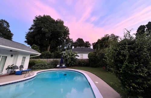Our three- bedroom home in located in the historic Summerville neighborhood. We also have a lovely detached pool house with it's own wi-fi, a sofa bed, and full bathroom.