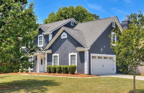 Welcoming you to our home. This stunning 2-story stucco residence, boasting 4 bedrooms and 2.5 baths, sits graciously on a sprawling corner lot. As you step through the inviting foyer, your gaze is drawn to the gleaming hardwood floors that adorn the formal living room, great room, and dining room, adding warmth and sophistication to every gathering. Imagine cozy evenings by the fireplace or hosting memorable dinners in the spacious dining area. The heart of this home lies in its beautifully renovated kitchen, offering both functionality and style. Prepare culinary delights with ease, surrounded by stainless steel appliances and ample storage space. Retreat to the tranquility of the master suite, featuring a luxurious en-suite bathroom with quartz countertops perfect for relaxation and rejuvenation. Three additional bedrooms featuring 2 queen size and 1 full-sized bed for guests to reset, a home office on the main floor with 2 sets of dual screens desks complete with docking stations for your convenience. Step outside to our deck great for outdoor entertainment and relaxation. With a charming gazebo offers the perfect setting for al fresco dining or enjoying lazy afternoons with loved ones. A charcoal grill is available for use aswell as newly installed gym equipment. Conveniently located to local shopping, I-20, and Fort Eisenhower. Best of all under 6 miles from Augusta National.