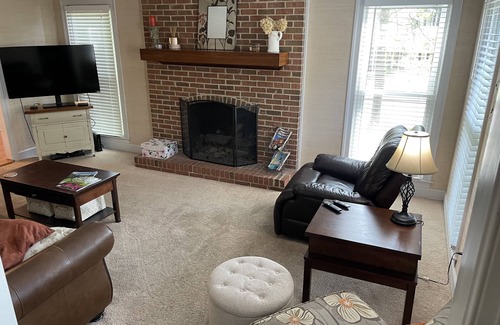 Beautiful 4 bedroom/3.5 bath home on corner lot in gated West Lake community featuring large master bedroom with spacious NEWLY RENOVATED bathroom, 3 fireplaces, garage, and back deck with tv and outdoor seating and eating areas. House has been updated with carpeting and granite countertops. We offer the little touches to make your stay special like a Keurig coffee machine, toiletries provided in the bathrooms, and delicious baked goodies upon arrival!
