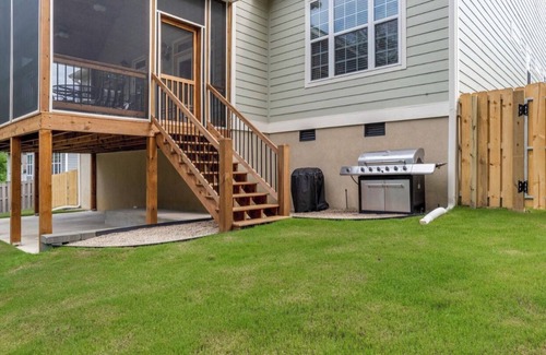 This beautiful custom built home offers a 4 bedroom, 3 1/2 bath open floor plan. It is located in Riverwood Plantation, also home of the Champions Retreat Golf Course. This is a split floor plan, along with an open bonus room upstairs including a bed, couch, and TV area. The bonus room, which is considered the 4th bedroom, shares a bathroom with the 3rd bedroom. Each room comes with queen size beds, aside from the master bedroom which has a king size. This home has a large kitchen and a large living area which is great for entertaining. It steps down into a sunroom w/ table and walks out onto a large screened in back porch that includes a large table and sectional. This is great for relaxing after a long day on the course. Each room, along with the living room and back porch, includes a TV. Garage is also set up for entertainment, including a ping pong table and dart board. Gas flat grill and charcoal grill is set up right off of the back porch. This home is just 1 mile from a grocery store, restaurants and more.