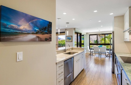 The elegant remodel was completed in 2017 and only the finest materials were used. From top to bottom, no expense was spared to create the ideal tropical retreat for your next Maui vacation. The suite comfortably accommodates up to six guests with ample room to spare.