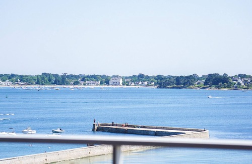 --For the sake of transparency, we would like to inform you that façade renovation works (painting and balcony replacement) will take place on the building adjacent to the MAVE MAI apartment, from January until the end of June 2026.Please note that these works may cause some noise or visual disturbance, which is beyond our control.-- Mave-Maï is this apartment resolutely facing the ocean thanks to its large through balcony/terrace.Its 180-degree panoramic view of the Bay of Concarneau, immerses you in a real open-air postcard and allows you to observe the iconic places of Concarneau such as Le Quai Nul, Fort du Cabellou, the Glénan, as well as the back and forth of sailboats and fishing boats.Everything is done to only have to put down his suitcases and relax there.The accommodation : Located on the fourth and top floor of a small secure condominium with elevator and private underground parking, Mave-Maï, with an area of 80 m² and completely renovated, will accommodate up to 4 people. This apartment will immerse you in the heart of Concarneau thanks to its stunning view of the Bay and its location less than 450 meters from the city center.The virtual tour of the apartment will soon be available on our Mariette Immobilier Conciergerie website.As soon as you enter the apartment, you will be caught up in the blue of the ocean, this area serves all the rooms in the accommodation. On your right you will discover the large living room with its sitting/living area giving access to a first balcony with a splendid sea view, then the fully equipped kitchen, reveals itself.Finally, walk along the hallway with many closets and discover the sleeping area with its two beautiful bedrooms also facing the bay. Then a bathroom with bathtub and separate toilets, complete this space.This place is ideal for a couple or family looking for tranquility.What you like:- Its magnificent view of the Bay of Concarneau - Its proximity to the beach (50 meters) and the city center (300 meters) - The private underground parking space.Linen rental: Our concierge service offers you the rental of linen for the time of your stay: Bed linen kit + towels: €20 per bed.Bed size: 1 bed of 160/200, and 2 beds of 90/200.It is optional, it must be requested when booking.The Mariette Conciergerie team will accompany you with enthusiasm and professionalism during your stay.Guest accessThe property has private underground parking space. Be carfull the maximum high of the car is about 1m70 m.