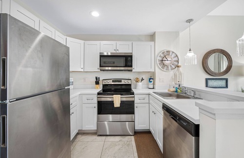 Situated just steps away from Madeira Beach and John's Pass Village Boardwalk, this condo provides easy access to the best of the area's attractions. You'll love the Mediterranean architecture and lush tropical landscaping 🌴 of Madeira Bay Resort, where you can enjoy amenities like a heated swimming pool, hot tub, and fitness center.