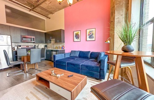 Designed with the traveler in mind, this two bedroom Suite (Sleeps 8) caters all your needs in a modern, spacious layout with metropolitan decor that gives this suite a sophisticated edge. The Michigan Suites are thriving with downtown vibes. This suite offers guests a modern space with custom comforts that are a cut above the usual VRBO experience. Each room is uniquely designed to its own stylish accents and convenient amenities to give you the perfect mixture of home and away. At the premium status level, our suite provides you with a premiere experience in a premiere city.