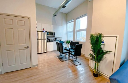 Designed with the traveler in mind, this two bedroom corner Suite (Sleeps 6) caters all your needs in a modern, spacious layout with metropolitan decor that gives this suite a sophisticated edge. The Noor Suite is thriving with downtown vibes. These suite offer guest a modern space with custom comforts that are a cut above the usual Vrbo experience. Each room is uniquely designed to its own stylish accents and convenient amenities to give you the perfect mixture of home and away. At the premium status level, our suite provides you with a premiere experience in a premiere city.