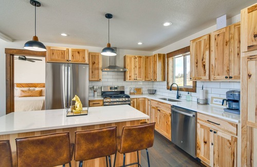 Traditional mountain living meets modern-day luxury at this 4-bedroom, 3-bath vacation rental. Situated at the foothills of the Rocky Mountains, this newly built gem is totally tucked away, yet close to numerous hiking trails and fishing lakes. Step out to explore all that the Front Range is known for, or hunker down in the comfort of home, cozied up by the fireplace or stretched out on the mountain-view deck. Either way, this contemporary cabin is sure to elevate your next high-altitude escape.