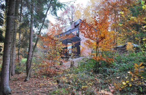 Luxuriously furnished holiday home "Meerhuisje" for max. 6 pers. on a small-scale holiday and nature park Domaine Le Boulac. Located in Izier (Durbuy). Beautiful view of (fishing) lake. Swimming pool and tennis in common. Oasis of peace and greenery.