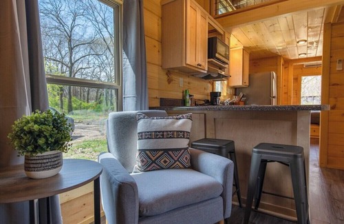 Meg Cabin at Wauhatchie Woodlands is a cozy, tiny cabin located just 5 minutes from downtown Chattanooga. It offers access to a private hot tub, a furnished back deck, and a covered front deck with a charcoal grill. In addition, there is a shared fire pit for you to enjoy during your stay. With a main bedroom and a sleeping loft, Meg can comfortably accommodate up to 4 guests and is equipped with everything you need to make the most of your time in Chattanooga.