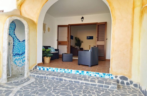 Positioned 100 meters away from the supermarket and just 1.5 km from Cala Liberotto beach, making it ideal for enjoying the various beaches the area offers. Situated on the raised ground floor of the residential complex, it includes an outdoor space furnished with sofas for outdoor relaxation and an outdoor shower.