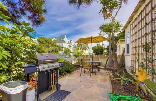 This adorable Mermaid themed beach rental is located steps from the sand in Mission Beach! Just cross the street and you're at the beach! Located in a quiet neighborhood away from the the crowds. Supplied with beach towels, beach chairs, sand toys, boogie boards and bikes for cruising the boardwalk! Garage parking & A/C included, both a rare luxury in this area. Ideal for 1 or 2 adults.