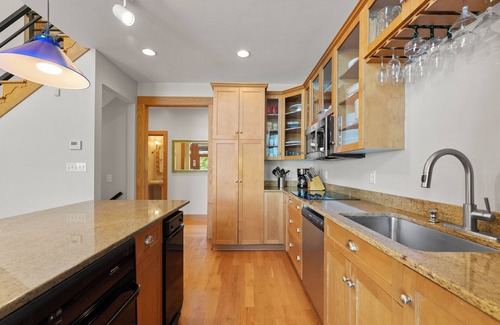This home features 5 cozy bedrooms, with a total of 7 beds and a sleeper sofa, offering ample space for up to 12 guests. The master suite is a true retreat, featuring a king bed, a private bathroom with his-and-her sinks, a water closet, a shower, and an antique clawfoot tub. The master also includes a private office space, perfect for handling any work during your stay.