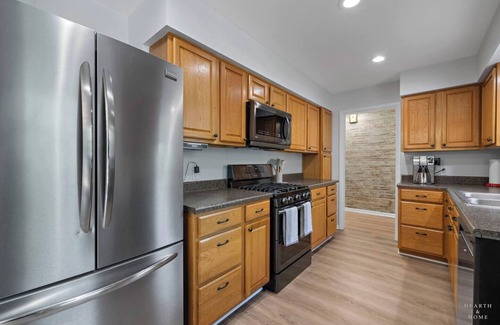 Welcome to La Porte! You will love this stylish Mid-Century ranch, where vintage charm meets contemporary comfort! A short walk to the beach. This spacious retreat boasts a studio with full bath separate from the main house, 3 additional bedrooms, 1.5 baths, and full basement with 4 full beds, there’s plenty of space for everyone, including families or groups of friends. Step inside and be greeted by an inviting ambiance accentuated by sleek mid-century furnishings and stylish decor. There are 3 bedrooms in the main living area, 2 with king beds, the other with a full XL over queen bunk. The semi-private studio has a king bed, full bath, and living area. The laundry is located here as well. The lower level features another recreation room with ping pong table and game area. The sleeping area has 4 full beds and additional lounge space. The fully equipped kitchen is complete with modern appliances and plenty of counter space, perfect for whipping up full meals or snacks. Entertainment options abound with multiple gathering areas featuring 65" smart TVs, ideal for movie nights or catching up on your favorite shows. Challenge your companions to a friendly game of ping pong in the basement, or unwind outdoors on the deck while enjoying the picturesque views and s'mores around the firepit in the fully fenced yard. With 4-5 bedrooms and basement sleeping areas, everyone will find their perfect retreat at the end of the day. Wake up to the soothing sounds of nature and sip your morning coffee while admiring the surrounding beauty from the comfort of your private oasis. Paved biking and walking paths nearby. You'll find quality restaurants and shopping in downtown La Porte. The fantastic dunes and beaches of Lake Michigan are only 15 minutes away! Our Mid-Century Modern Ranch House offers the perfect blend of tranquility and excitement for your next getaway. Book your stay today and experience the charm and comfort of this unique retreat! Guest have use of the entire property inside and out! Please contact us through the AirBnb app or via phone or text at the phone numbers listed in the house manual. We do our best to respond quickly.