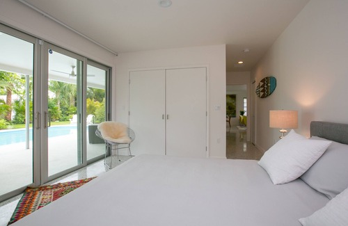 Coastal modern Island home. Sleeps 6. Beautiful saltwater pool. Lush garden. Charming downtown area within walking distance. Venice beach located about 1000 steps at the end of the street. A breeze to walk and bike to.